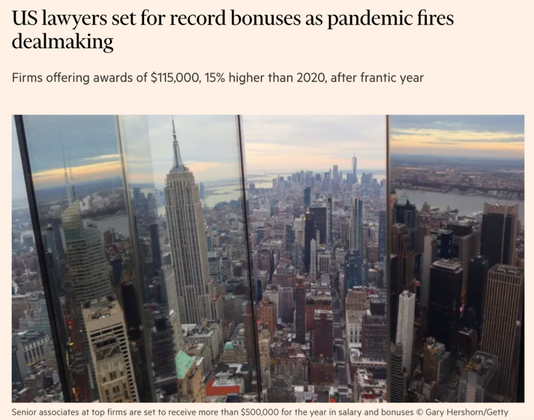 美國律師的年終獎將會創紀錄