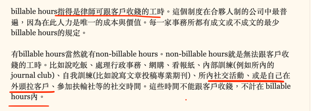 海外律所在發獎金時,不單會看工作年限,Billable Hours(受薪工時)同樣是一個重要的考核指標。