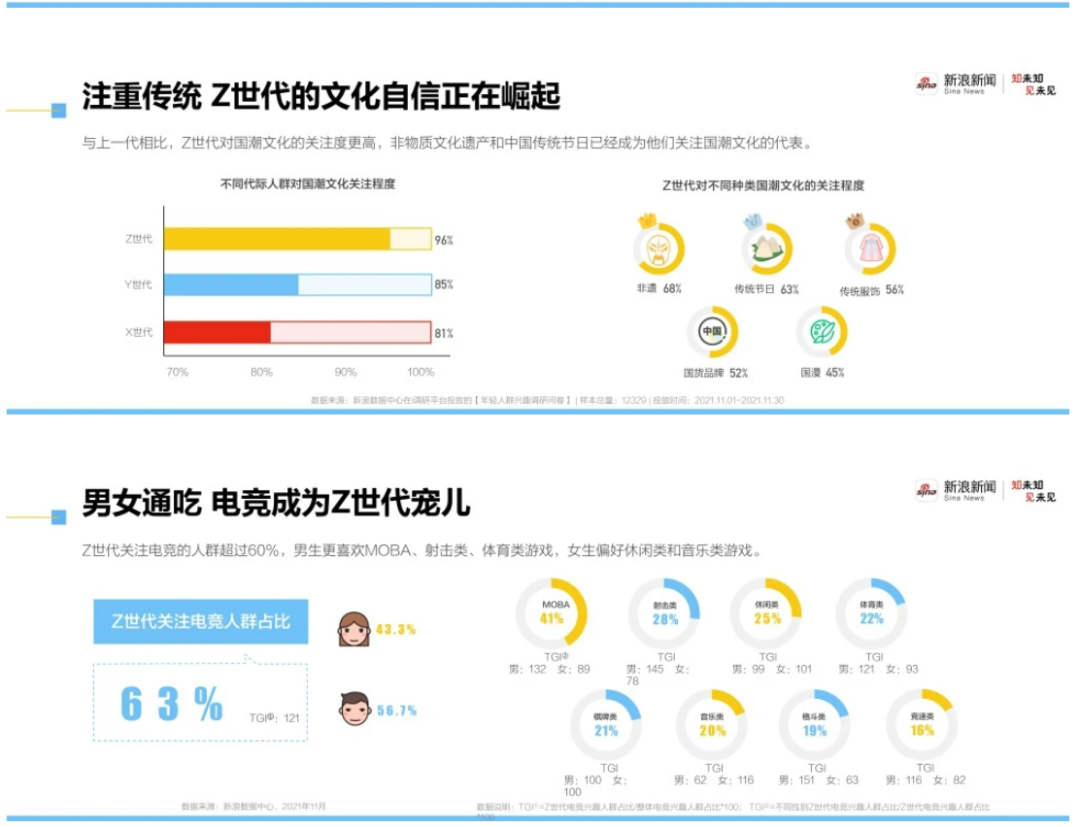 新浪新聞上週發佈的《走進自信的Z世代 2021新青年洞察報告》顯示,越來越多的興趣圈層出現在Z世代的世界中,電競、國潮、萌寵、潮玩等小眾圈層都有專屬的年輕羣體。這種趨勢的形成,一方面來自於Z世代個性化消費心理的驅動,另一方面則源自文化自信對年輕人的影響。