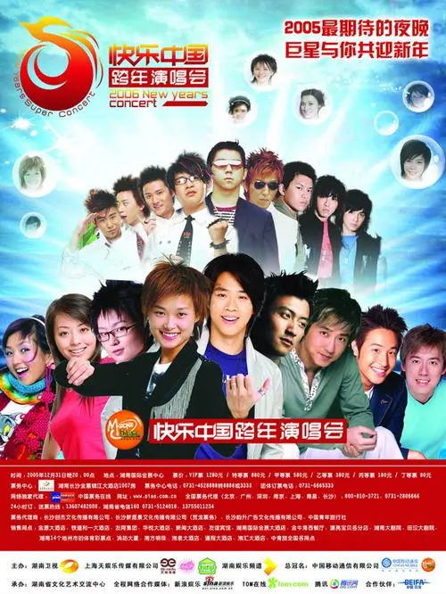 2005年,《超級女聲》成為年度現象級選秀節目,總決賽的收視率高達11.65%,是中國綜藝史上唯一一期收視率破10%的節目。藉着這次東風,湖南衞視以“05超女”為核心演出陣容,舉辦了首屆“跨年演唱會”,這也是業界和學界公認的內地“跨年晚會”首創。