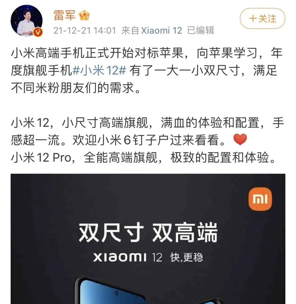 小米集團董事長雷軍在微博宣佈,小米高端手機正式開始對標蘋果,在產品品質和規格方面“向蘋果學習”。