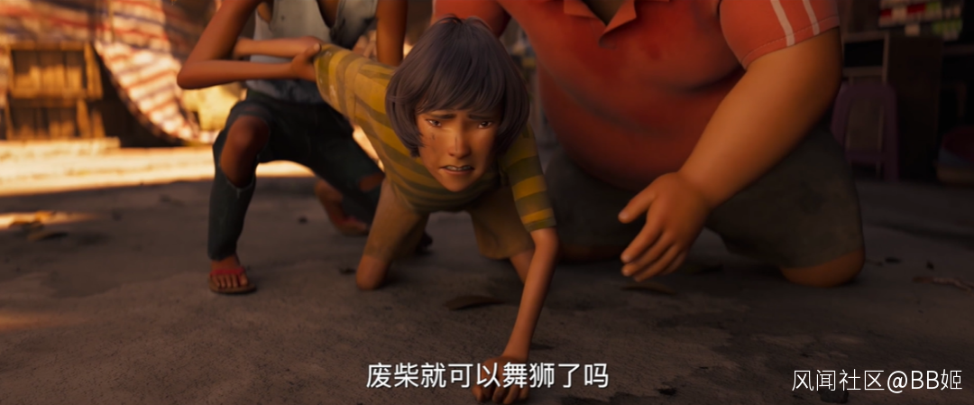 《雄獅少年》身上有一種對邊緣人的關懷,這是很難被否定掉的。這種底層視角,把電影變得不像是一部動畫,它走的完全是真人電影的邏輯。別説國產動畫沒人拍這東西,就連和商業沾邊的國產真人電影,都沒幾部會去碰它。