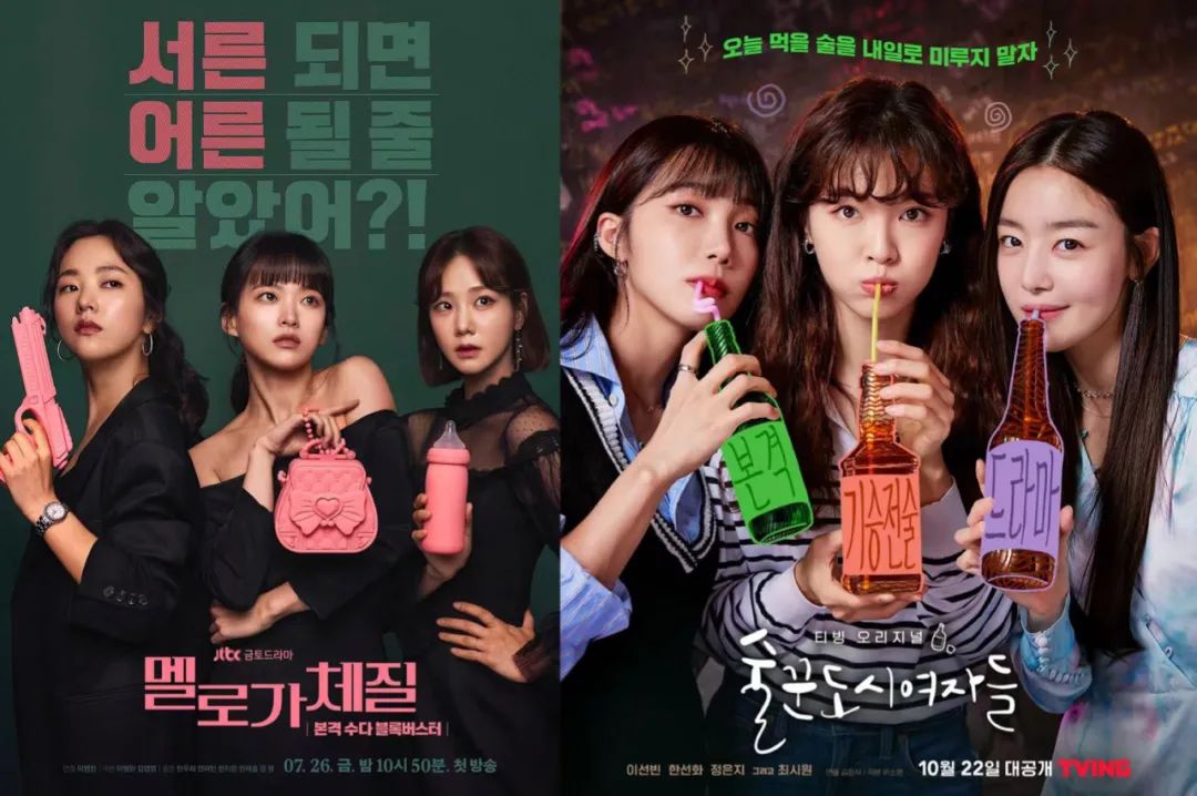 《都市酒鬼的女人們》則是用“酒”串起了三個女人的友誼。在劇裏,安昭熙、韓智妍、姜智久是三個熱愛酒精的酒伴,三個女人的大部分交流戲都發生在五福小酒館裏,她們的約會就是下了班一起喝到掛(連三個人的羣聊羣名都叫做喝到掛)。