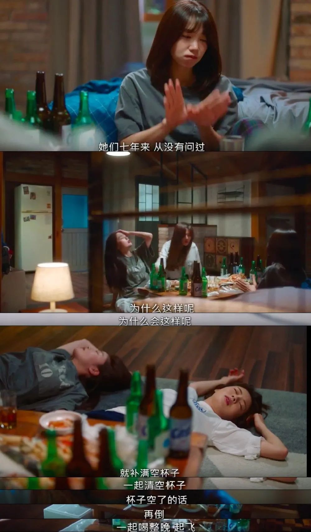 我很喜歡《酒鬼都市女人們》裏的一段,曾經做班導姜智久因為班上學生自殺的事情,意志消沉。兩位好朋友安昭熙、韓智妍沒有追問她發生什麼事,而是讓她冷靜了幾天以後,就像往常一樣,喊她出去吃飯、喝酒。