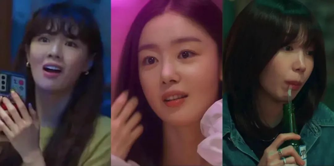 △《酒鬼都市女人們》的主角安昭熙就在台詞裏講過她們三個女生的性格,智妍漂亮,智久有膽量,她只是個普通的上班族。基本上就是對應我上面説的三個類型。