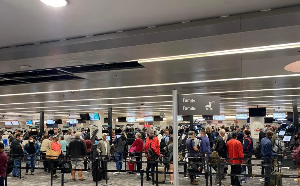 不僅如此,多倫多皮爾遜機場也開始變得擁堵了!有網友拍下T1航站樓的景象,密密麻麻的人也是把大廳塞得滿滿當當!