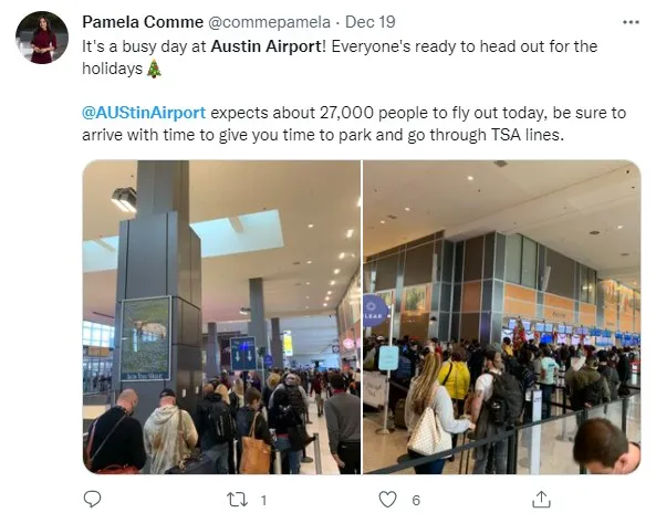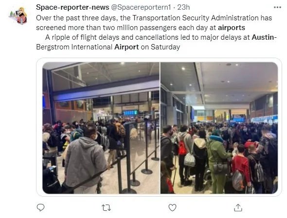 從上週六開始到今天,**美國德州的奧斯汀國際機場(Austin Airport)**裏面擠滿了人,到處都被圍的水泄不通!