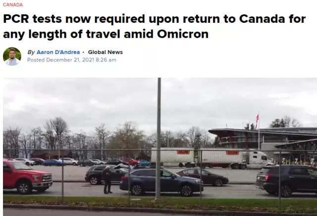 由於Omicron變種的感染病例急劇增加,加拿大聯邦政府決定重新啓動入境前檢測的政策,並於21日凌晨生效,要求所有入境加拿大的旅客進行聚合酶鏈反應(PCR)等分子檢測。