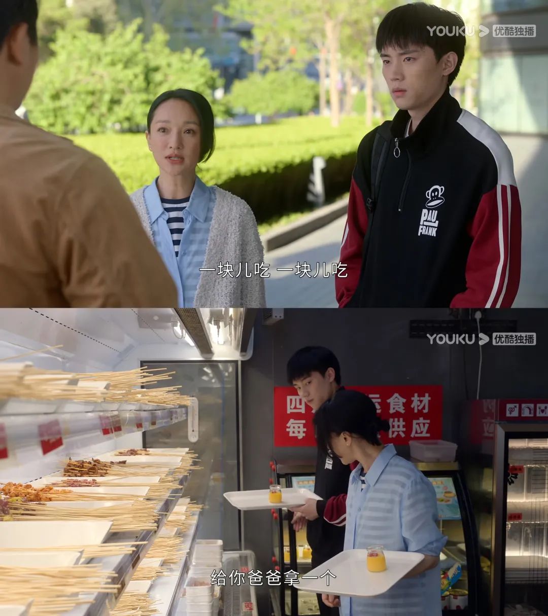 看出兒子在他們之間處境尷尬,她便主動提出叫上金波一起吃飯,還在選擇餐食時,提醒兒子給爸爸也拿上一個布丁。