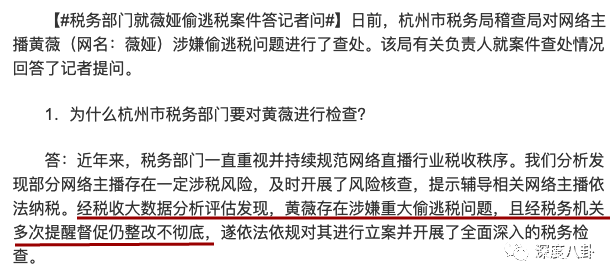 杭州税務部門是如何答疑薇婭被查税的問題呢。
