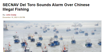 12月16日,美海軍官方性質的網站USNI再次刊登拿中國漁船説事的文章:美海軍部長卡洛斯·德爾託羅指責國際非法捕撈活動,中國是罪魁禍首。