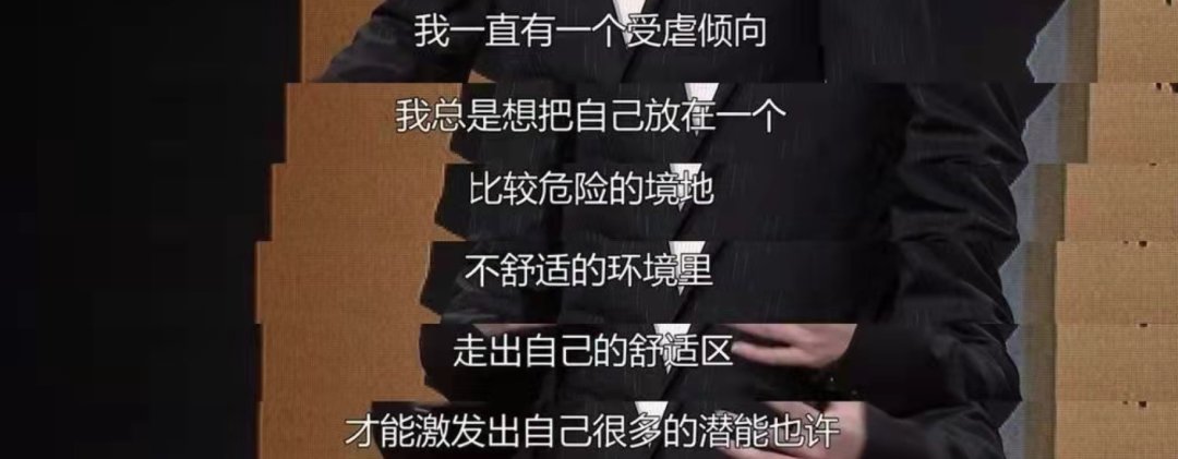 用他自己的話來説,就是有受虐傾向,喜歡走出舒適區。