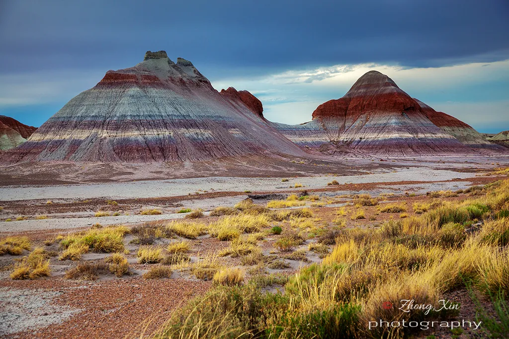 掩埋古代森林的可能是一次泥石流或者一次火山噴發,後續經過數億年的沉積,再因地質抬升,被風和水流侵蝕重新暴露在地表,同樣的作用也形成了彩虹般的地層結構,日落和傍晚的風暴給彩虹般的地層更披上了變化莫測的色彩 | 鍾蜀黍