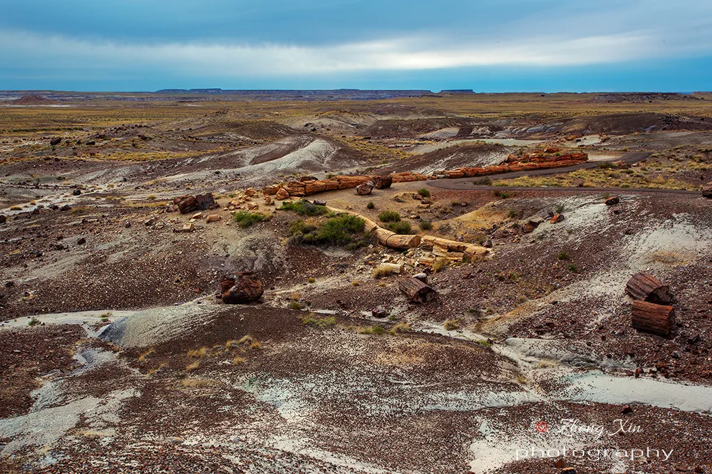 當我驅車開過科羅拉多高原,這裏已經滿目是岩石和荒漠。**如果沒有這些硅化木和壯觀的沉積層,誰會知道這裏曾經是連綿的針葉森林呢?**誰會知道一羣扁肯氏獸的命運?