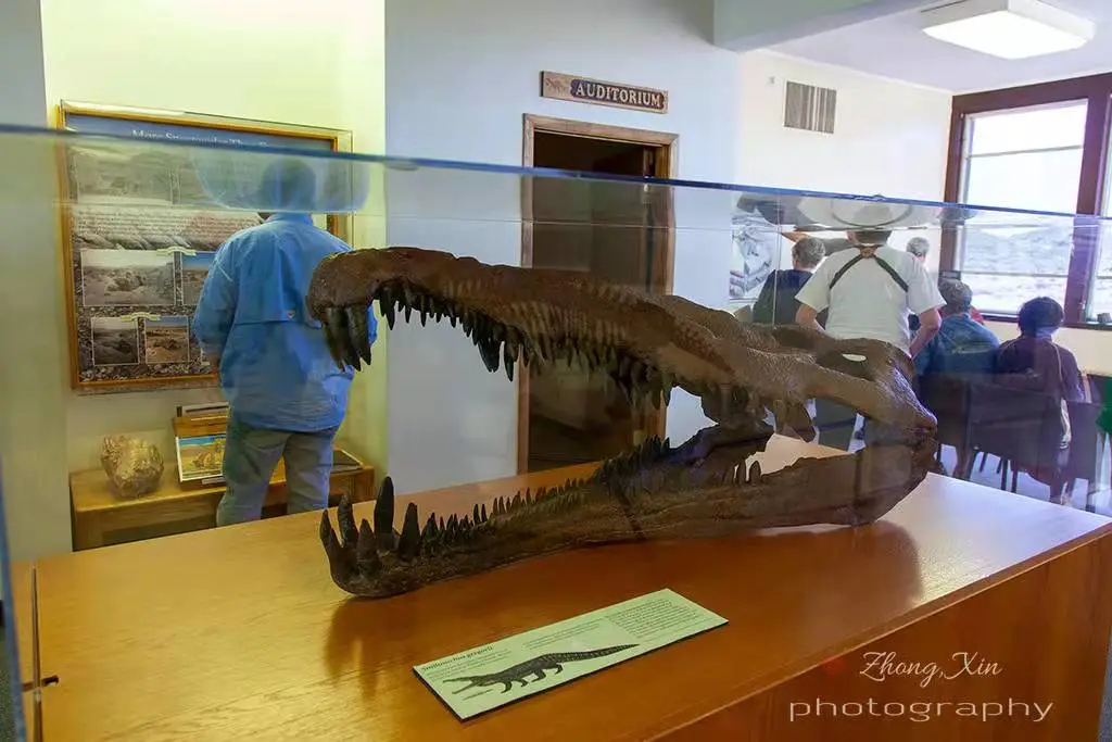 這個頭骨就來自於鑿齒鱷屬;雖然長得像鱷魚,但屬於植龍目的掠食者,和鱷魚關係很遠 | 鍾蜀黍