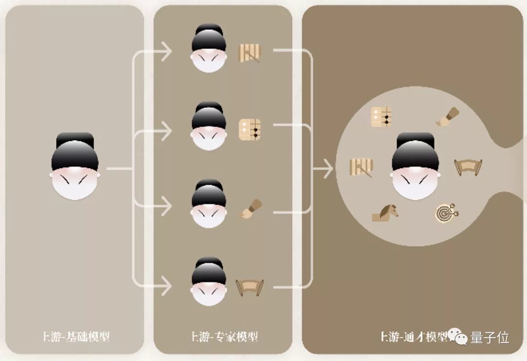 它們三個就像是“藏經閣”一樣,奠定了在通往通才道路上海量知識和建模等能力的基礎。