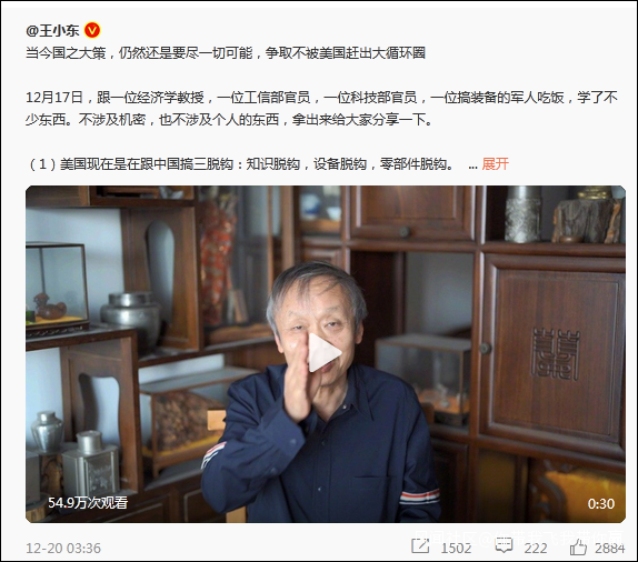 王小東:當今國之大策,仍然還是要盡一切可能,爭取不被美國趕出大循環圈_風聞