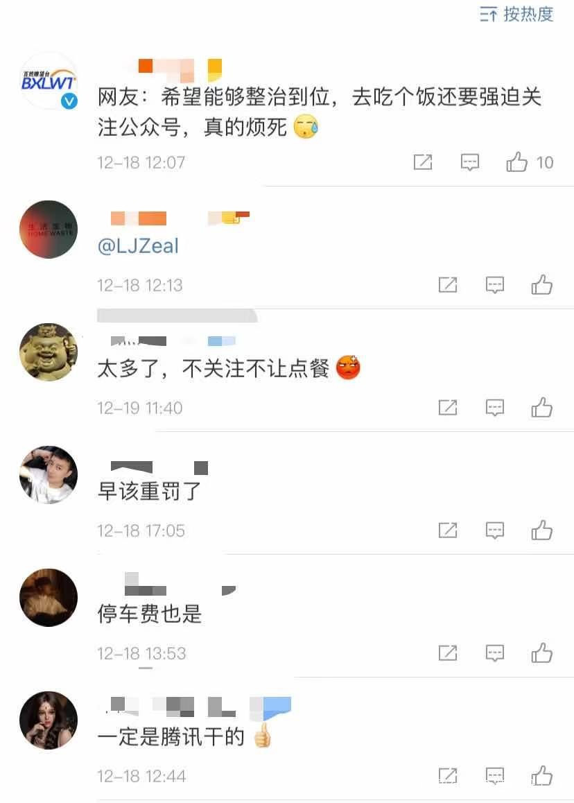 12月18日,據“上海市消保委”微信公眾號消息,近日,騰訊公司向開發者推送了關於自查“掃碼點餐強制關注公眾號”問題的通知。