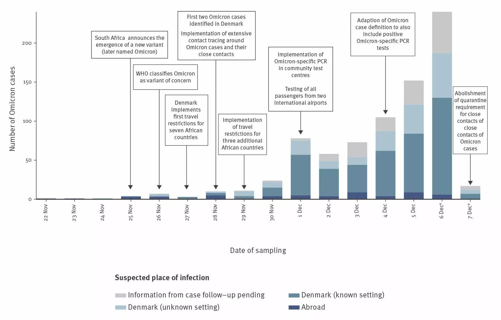 2021年12月16日,丹麥學者Laura Espenhain等人發佈奧密克戎變異株感染者流行病學特徵研究,並與同期德爾塔感染者進行比較。這是全球針對奧密克戎的第一項流行病學研究,提供了真實世界的疾病情況。