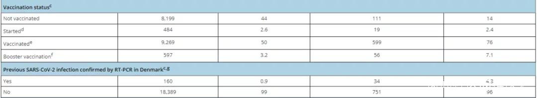 在奧密克戎感染者中,有76%的人接種了2針疫苗,7.1%的人甚至接種了加強針。也就是説,全部感染者中共有83.1%的人已經完成了疫苗的完全接種。而在德爾塔感染者中僅有53.2%完全或加強接種疫苗,顯著低於奧密克戎。此外,在785名奧密克戎感染者中,有34名(4.3%)的患者曾感染過新冠病毒,遠高於德爾塔的0.9%。