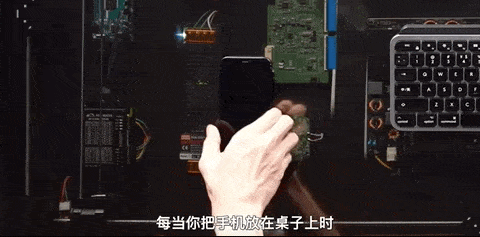 不僅桌子全透明,放手機的時候,還有一隻“電子貓”會自動移到手機下方充電。