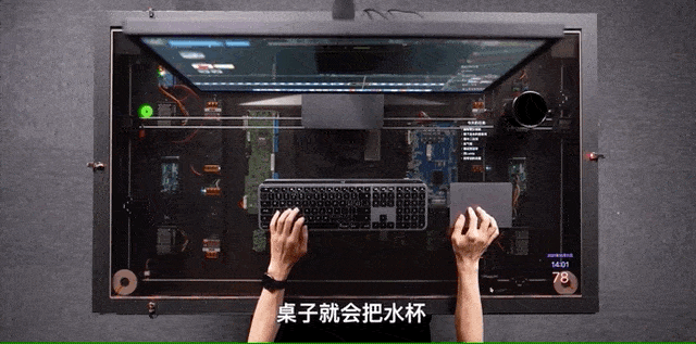 在這8分鐘的視頻裏,他做了一張“賽博朋克辦公桌”。