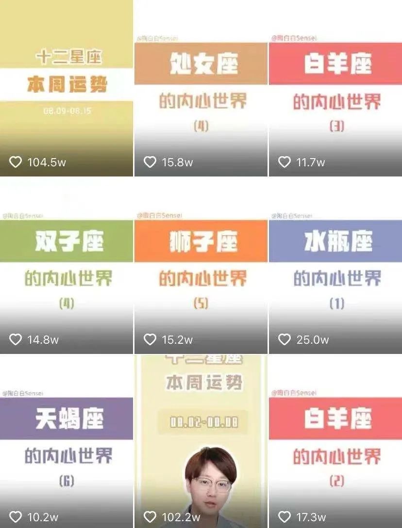 不同於普通的星座博主,陶白白的特點不在於星座運勢判斷,而是分析不同星座的行為模式與心理活動。