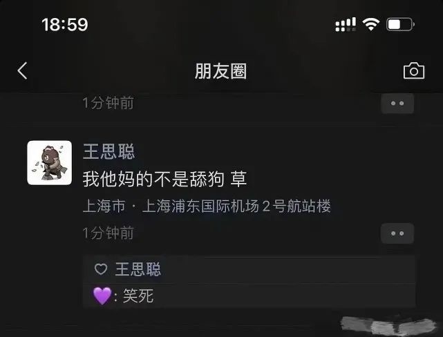 而被扣上“舔狗”帽子的王思聰,氣得在朋友圈發言:“我他媽的不是舔狗,草。”