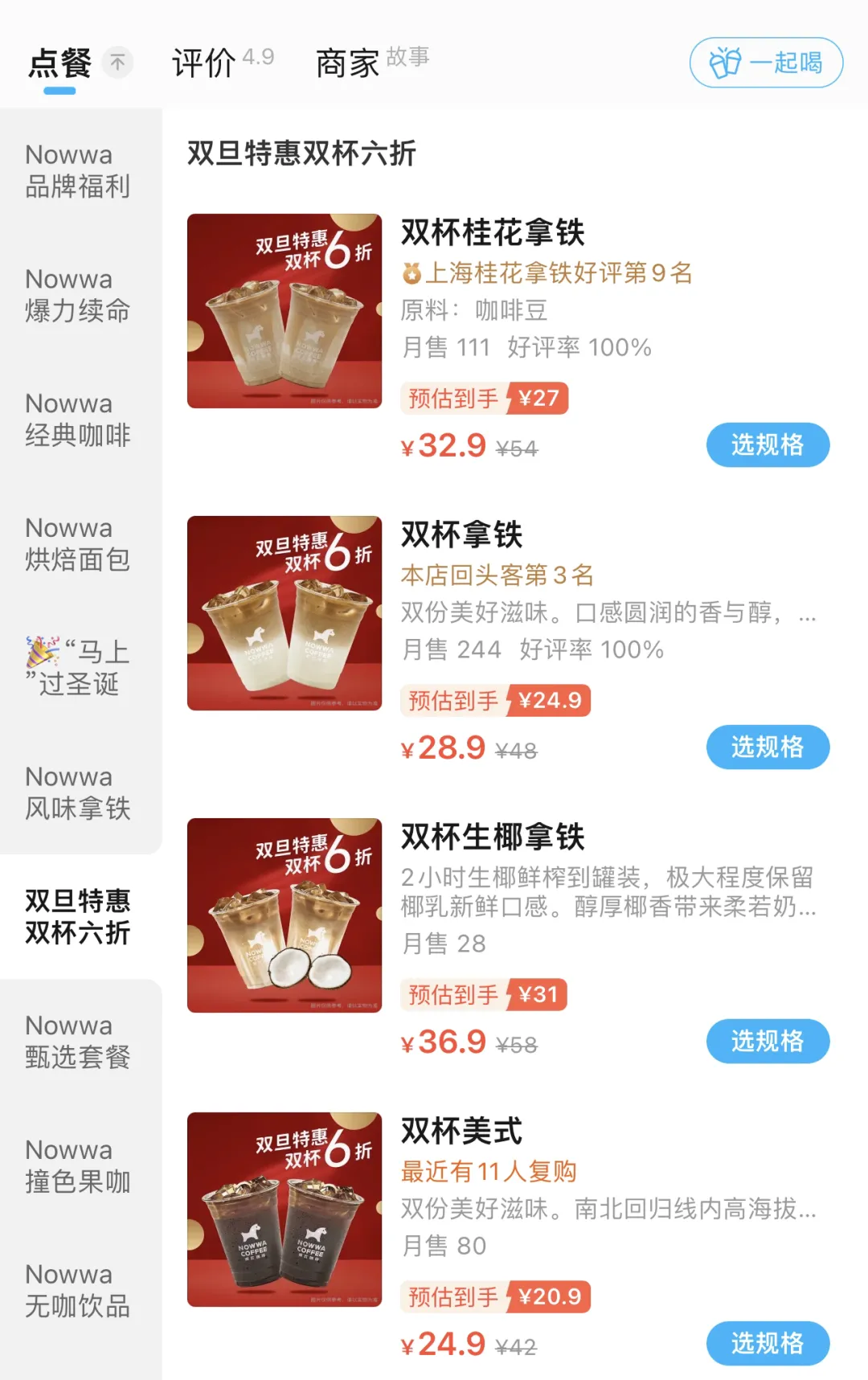 在外賣平台上,挪瓦咖啡的菜單和常規飲品店有些不同。