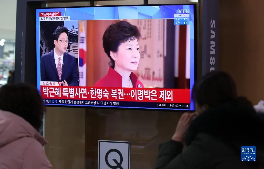 ● 12月24日,人們在韓國首爾站候車室觀看與前總統朴槿惠特赦有關的新聞。(圖片來源:新華社/紐西斯通訊社)