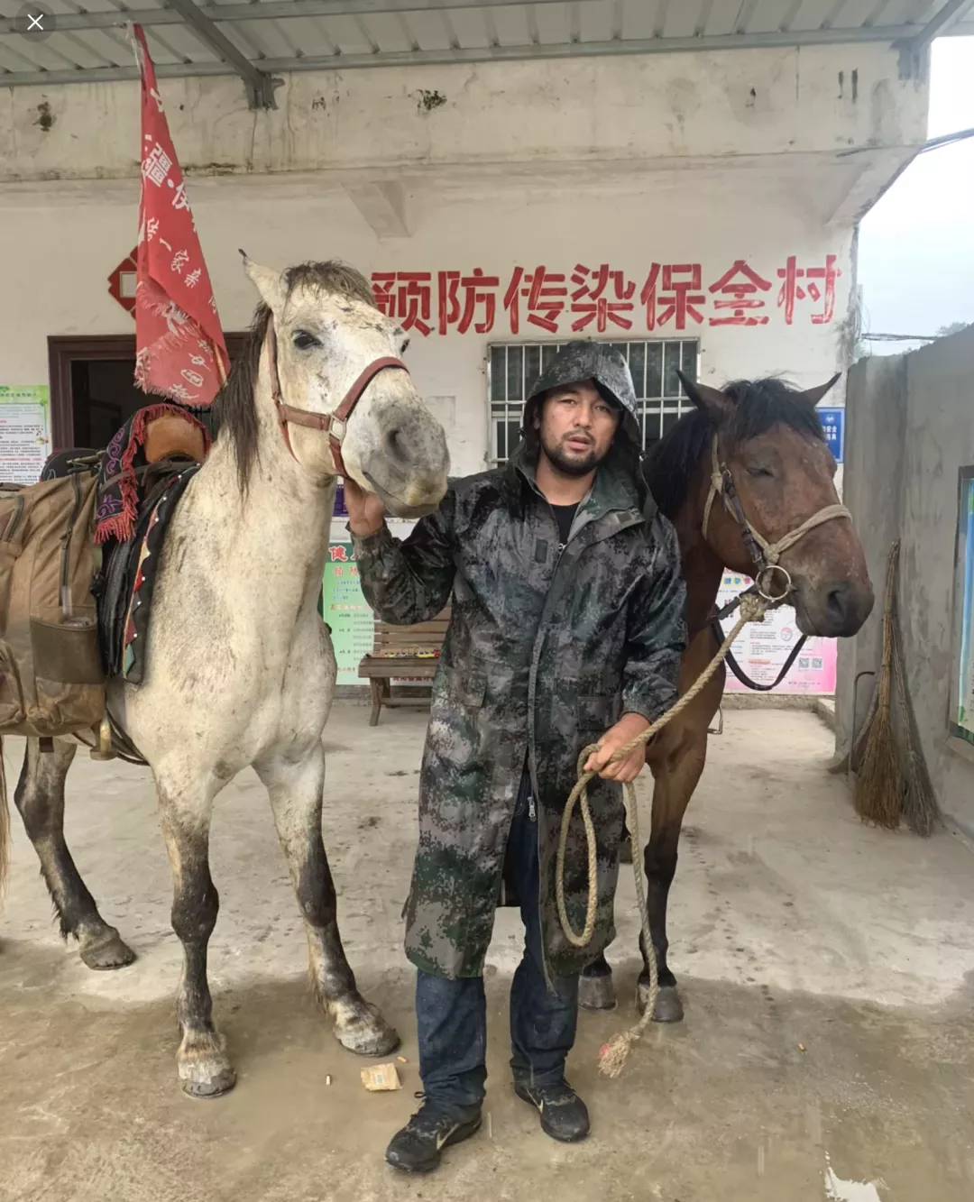 當人快要走到面前,閔德華才從樹後出來,直接攔住對方:“你牽的馬是誰的?” 一開始,小夥子還説是自家養的。閔德華告訴他,“這是我從新疆一路騎過來的”,小夥子又改口説,這是他早上在路邊 “撿”的。
