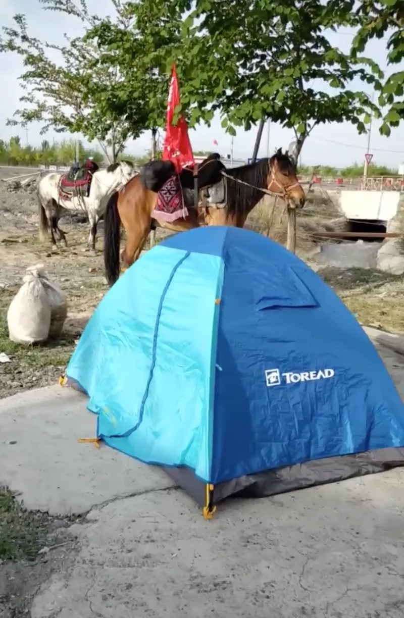 於是他去了伊犁市區的户外用品商店,才發現原來還有睡袋這種東西,那麼輕。老闆還建議他帶上一個防潮墊。帳篷、睡袋、防潮墊這三樣就成了他的全部裝備。等他真的上了路,騎着馬的閔德華遇到了全國各地的“驢友”,才知道原來還有衝鋒衣等等裝備。