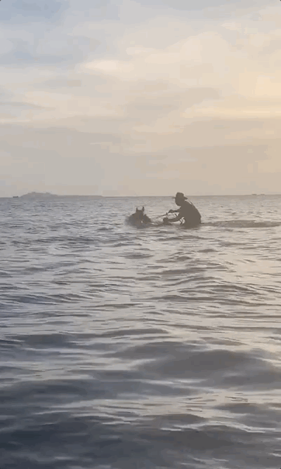 在三亞,當閔德華騎着馬在海灘上漫步時卻遭到了阻攔,負責安保的人告訴他,海灘上不能騎馬。“你説海灘上不能騎,那我就去海里騎!”就這樣,閔德華一人一馬在海里飛奔,這段視頻現在還是他的置頂視頻之一。海水在馬的脖子附近,騎在馬背上的閔德華,胸口以下也沒在海水裏。逆光讓他和馬都成了剪影。這一條視頻點擊率過百萬,超過2萬人點贊,2000多人留言評論。