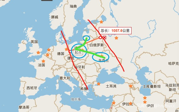 立陶宛、烏克蘭、波蘭三個國家,藉着近期俄羅斯和烏克蘭幾乎擦槍走火的勢頭,決定中斷從中國發往歐洲的中歐班列。仔細分析,這裏面運用了火上加油、聲東擊西的策略,真是下了一手精妙的佈局。從圖中可以看到,這三國正好構成了一個阻擋“中歐陸地貿易線路”的大三角。