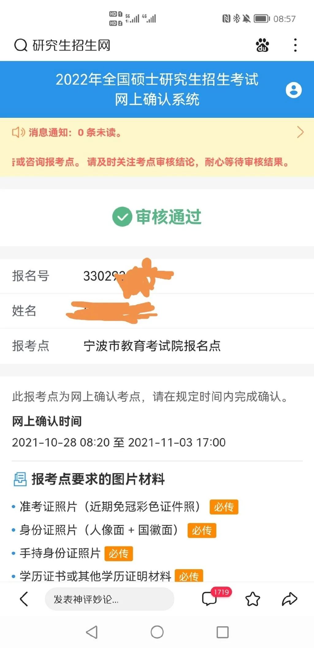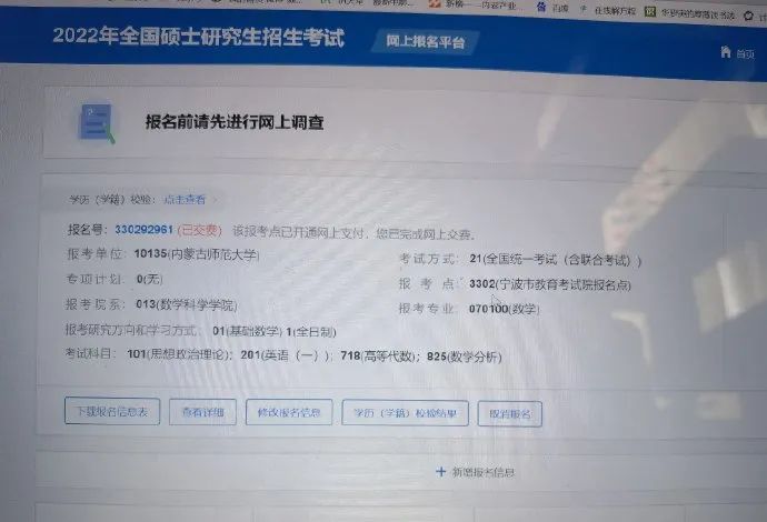 結果!寧波教育考試院就給我打電話了,讓我趕緊去填報信息,別錯過考研了。我説我已經有博士學位了,今年報名純粹是打發時間。。。