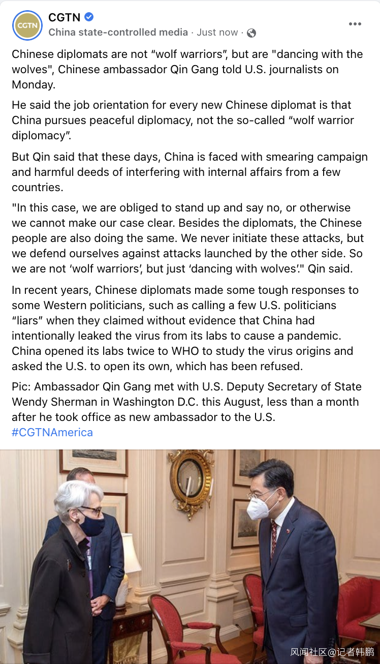 2、秦剛:我們不是“戰狼”,只是“與狼共舞”!