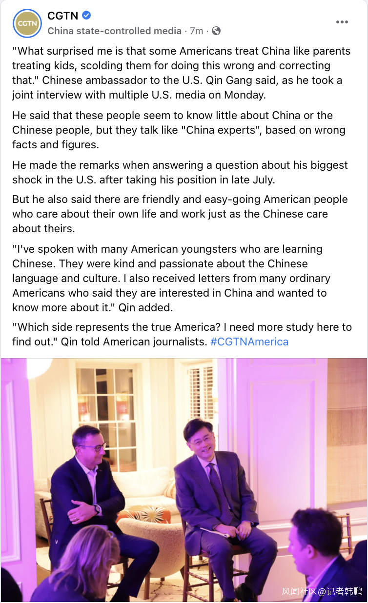 秦剛大使接受美媒聯合採訪,有趣的是,美媒至今沒見報!_風聞