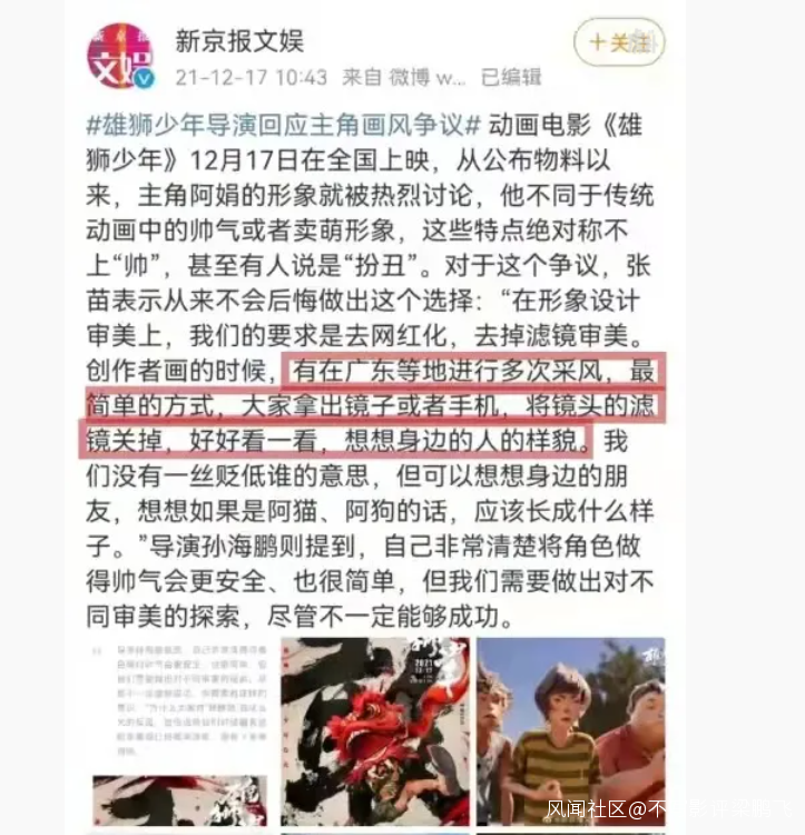 尤其是網上爆出《雄獅少年》漫畫原畫的主角,其實還挺好看的情況下,很多觀眾對導演的這種選擇,就更加怨念了。