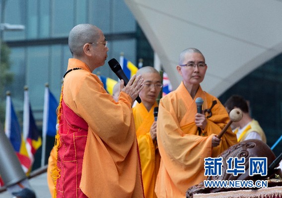 5月8日,佛光山澳大利亞總住持滿可法師在2016“佛誕節多元文化慶祝大會”上誦經祈福。新華網發(朱宏業攝)
