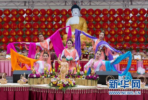 5月8日,當地藝術團體在2016“佛誕節多元文化慶祝大會”上表演敦煌舞《飛天》。新華網發(朱宏業攝)