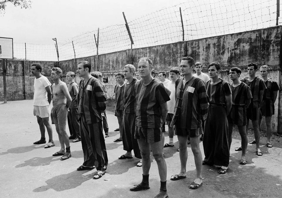 ▲1973年3月,美軍戰俘站在越南河內戰俘營內,等待國際監督和監察委員會對戰俘營進行檢查。