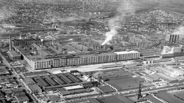 ▲圖為20世紀40年代、21世紀初美國底特律東部帕卡德汽車廠的場景對比。該廠由阿爾伯特·卡恩設計,在1903-1958年間為帕卡德汽車公司生產豪華汽車,在美國去工業化進程中逐漸被廢棄。