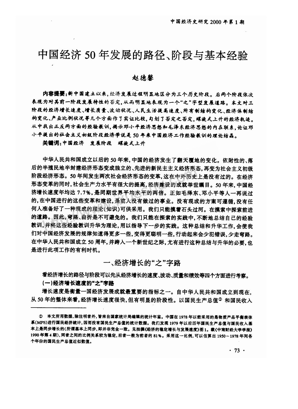 下面這篇原載於一份名叫《中國經濟史研究》的學術期刊2000年第1期的文章《中國經濟50年發展的路徑、階段與基本經驗》中説: