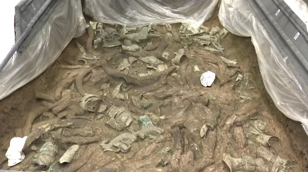 隨着發掘工作推進,現在已知,8號坑的象牙數量,同樣也最多。考古工作隊介紹,依照現有的埋藏邏輯來看,8號坑大型青銅器密佈,而且越向下青銅器越大,提取難度也大,田野發掘可能要持續到明年七月。
