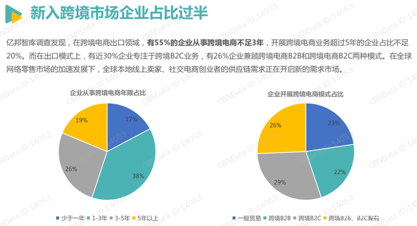 藍海當前,出海依舊是中國品牌的共識,且越來越多的初創企業、中小廠商加入賽道。億邦智庫發佈的《2021跨境電商行業發展報告》中提到,在跨境電商出口領域,55%的企業從事跨境電商不足三年,開展跨境電商業務超過五年的企業不足20%。