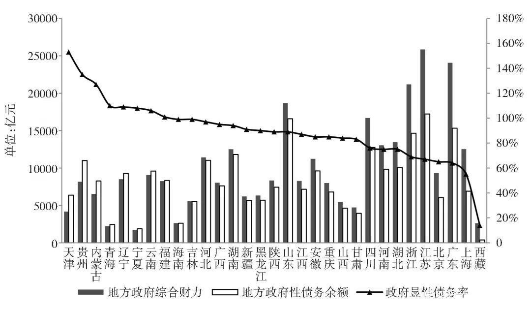 圖1 中國各省(自治區、直轄市)地方政府顯性債務率