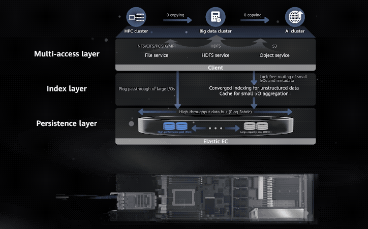 它是一種可大規模橫向擴展的智能分佈式存儲,可以hold住高性能計算、AI應用、數據庫、大數據分析和海量數據備份歸檔等業務需求。