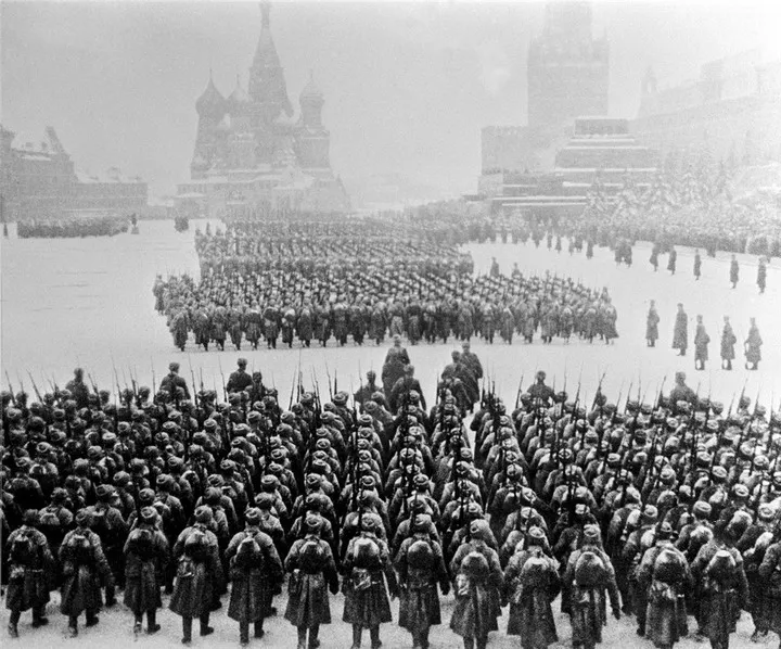 **“紅軍戰士們,蘇聯雖大,但我們已經無路可退,身後就是莫斯科!”**蘇聯的後備師在一遍遍“烏拉”聲中通過紅場檢閲,以視死如歸的信念直接開赴前線戰場。