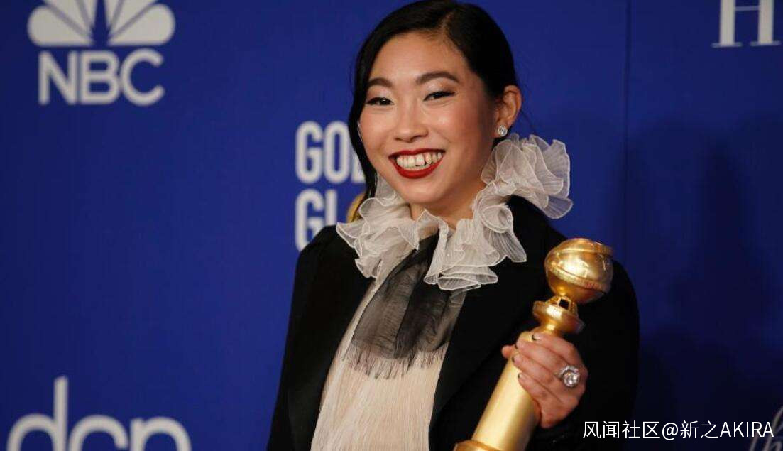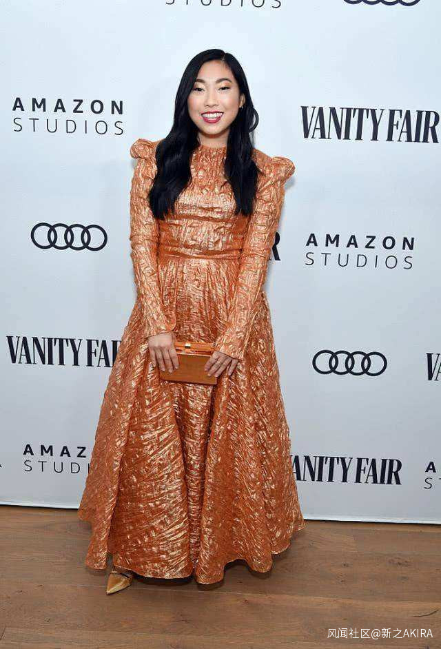 (這裏沒有黑奧卡菲娜的意思,我一點都不覺得她“醜”。但是我真心覺得在好萊塢混的很多華裔女星在走紅毯的時候是在刻意穿在時尚審美中“不得體”的衣服,讓自己顯得很俗、很土。比如説奧卡菲娜明明穿個帥氣的西裝配褲子就很瀟灑,非要穿這種毫無設計感的膨脹金屬色色醜裙子。下圖也是,奧卡菲娜身材上最大的短板就是脖子短且前伸,結果她非要穿這個泡泡領把所有的目光都集中在她的脖子上。。。)
