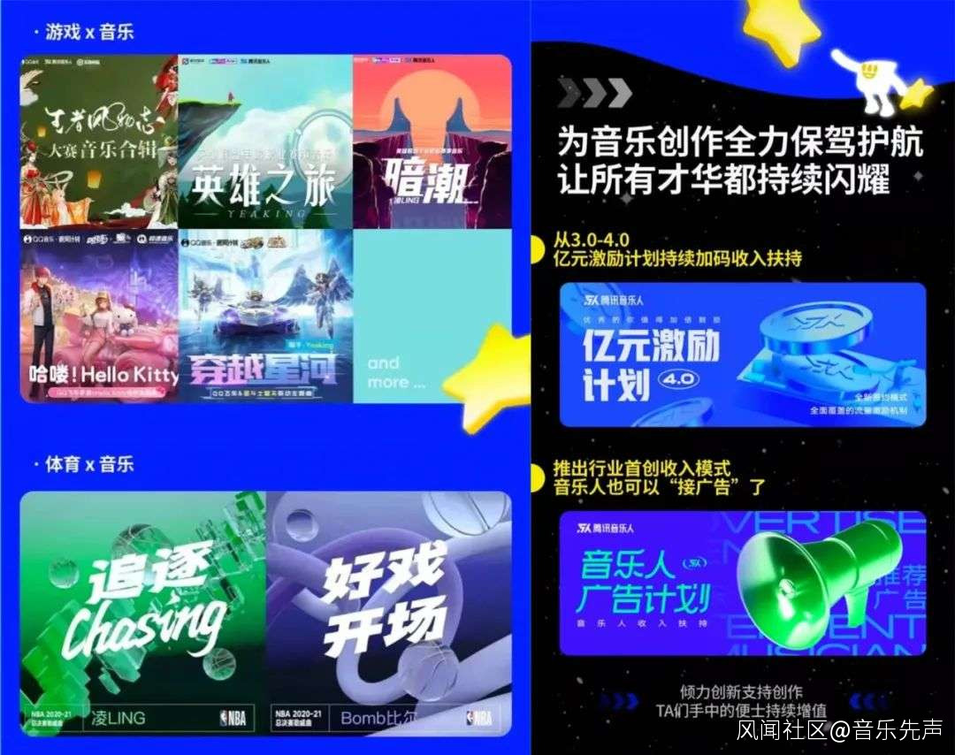 其中,最值得一提的便是騰訊音樂人背後騰訊音樂娛樂集團和騰訊生態的跨界資源,包括音樂與體育、音樂與遊戲、音樂與公益等不同領域的互動合作,形成了作品打造、藝人曝光、音樂變現等多重合力。